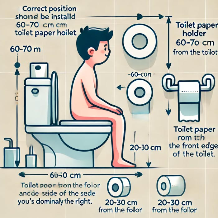 Chiều cao từ sàn đến tâm lô giấy: 60–70cm